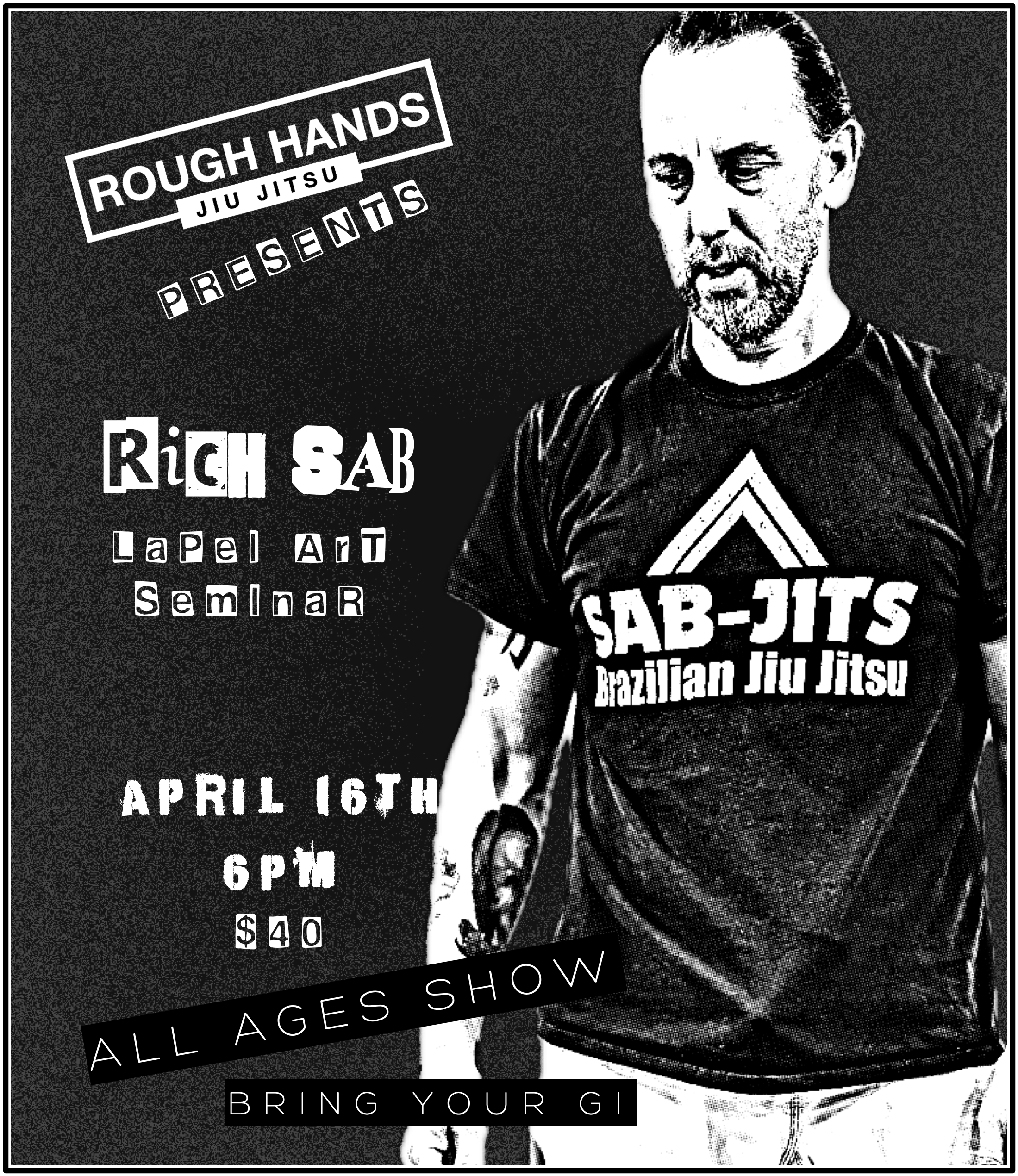 Rich Sab Seminar Friday, April 17, 2026 6:00 PM 7:00 PM Rough Hands BJJ 3048 Bardstown Road Louisville, KY, 40205 United States (map) Google Calendar ICS REGISTER HERE